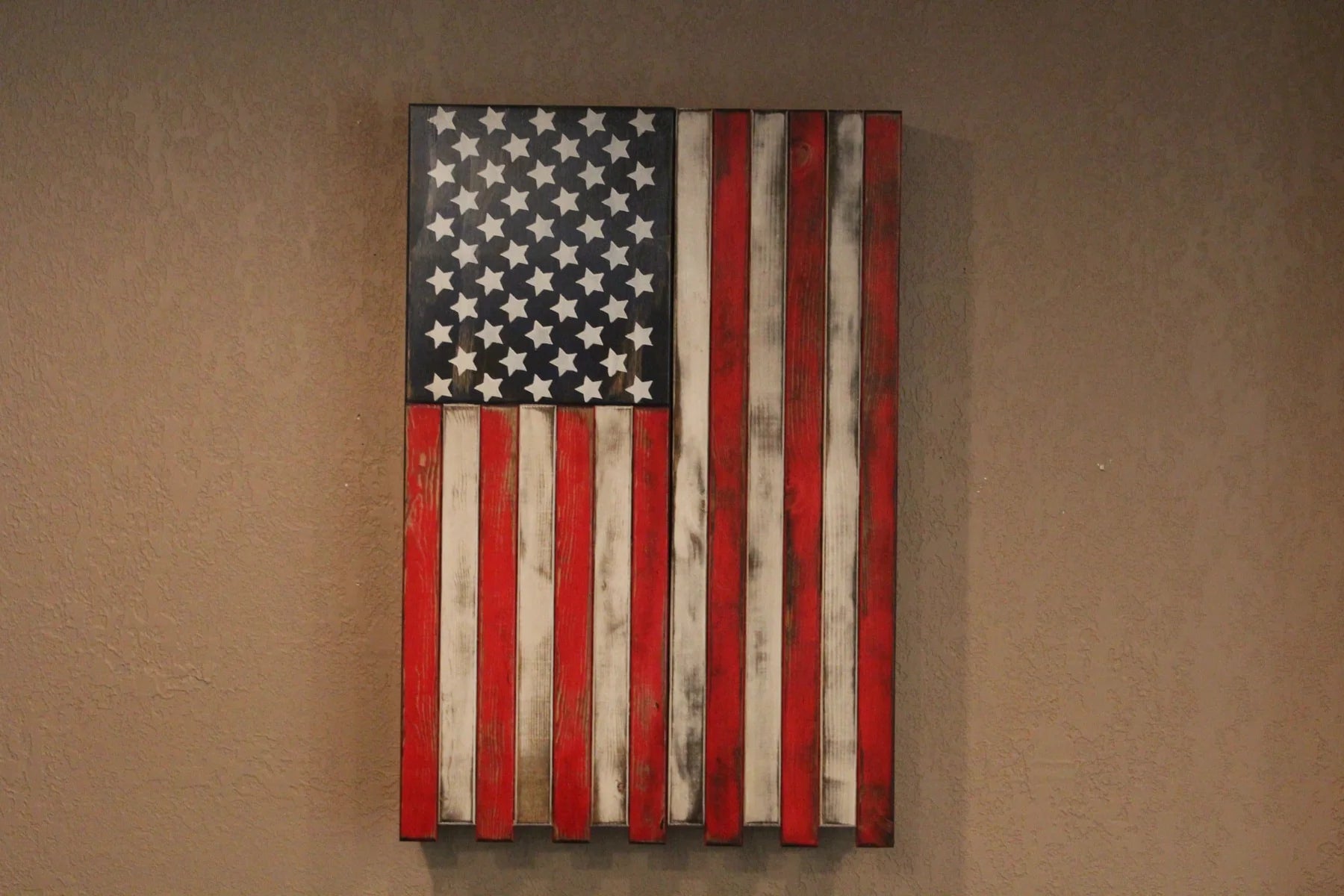 As with all of Liberty Home Concealments wooden concealment flags, this one is manufactured and finished in a high-quality lacquer top-coat by hand in Liberty Home Concealments Southwest Missouri facility. Liberty Home Concealment also offer a few different designs for our vertical flag, however, we also allow you to customize the design of your flag upon request.