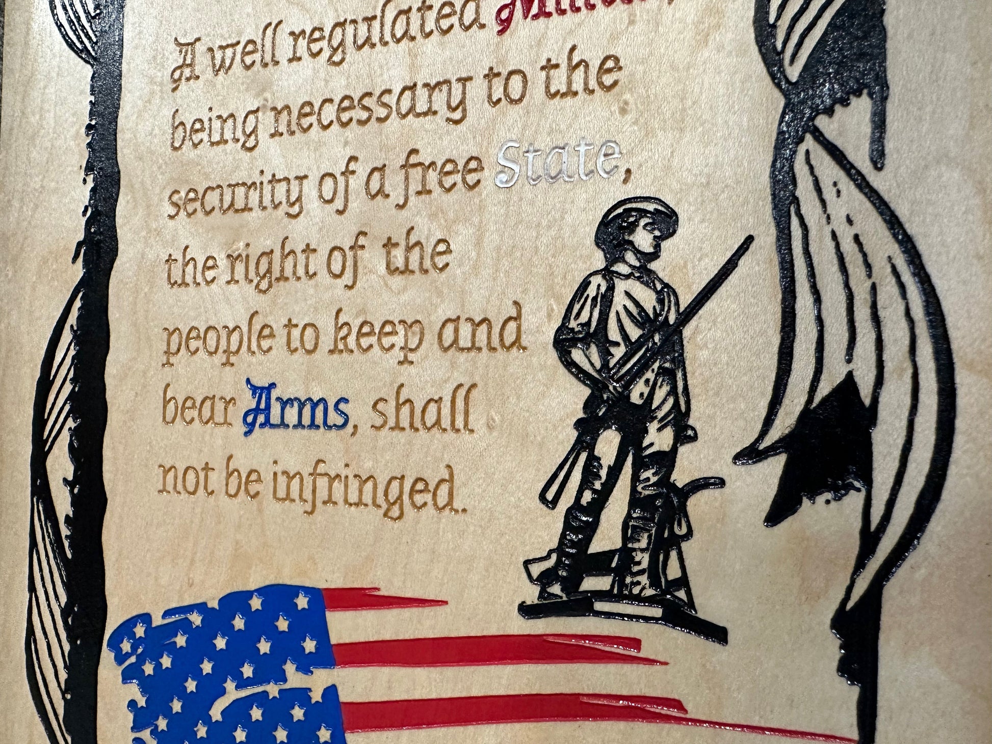 Discover a unique blend of security and patriotism with a beautifully crafted hidden gun storage solution. These decorative wall-mounted cabinets are designed to securely store firearms and self-defense gear while enhancing your home decor. Each cabinet features a striking design that showcases the essence of the 2nd Amendment, making a bold statement about your commitment to freedom and security.